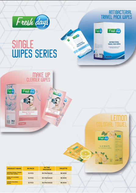 Comprehensive Protection. Our antibacterial wet wipes provide 99.9% protection against viruses and bacteria. We elevate medical care standards with our adult diapers and disposable sterile towels. With our disposable lemon-scented wipes produced for the Horeca sector, we add prestige to businesses.